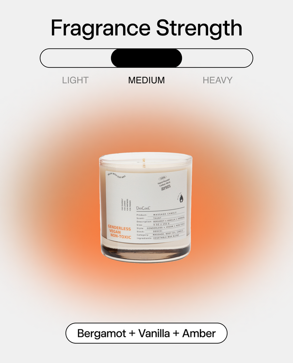 Meet a new way to Taunt. Your favorite scent, embedded in a massage candle. For slowing down and savoring intimate moments with yourself or your partner. Just burn, melt, cool, and feel.