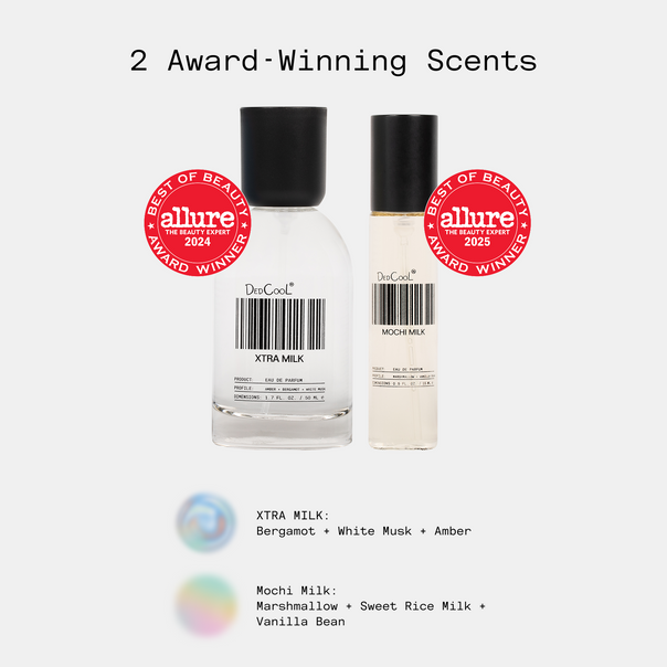 You can have it all, including two award-winning, best-selling scents from the Milk Family. Full-sized XTRA MILK and travel-sized MOCHI MILK are paired to wear at home, or on the go.