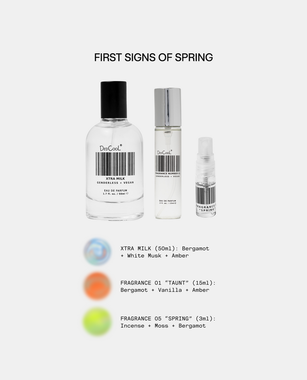FIRST SIGNS OF SPRING: Xtra Milk Full-size + 01 "Taunt" Travel Spray + 05 "Spring" Sample