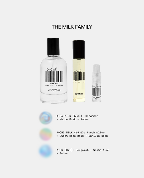 THE MILK FAMILY: Xtra Milk Full-size + Mochi Milk Travel Spray + Milk Sample